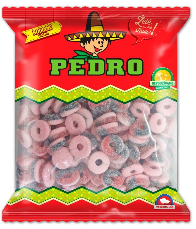 Koostisosad: glükoosisiirup, suhkur, vesi, želatiin, happesuse regulaator: sidrunhape; viinamarjamahla kontsentraat 1,25%, piimhape, fumaarhape, paksendaja: pektiin; lõhna- ja maitseained, toiduvärv: taimne süsi, paprika, antotsüaan.