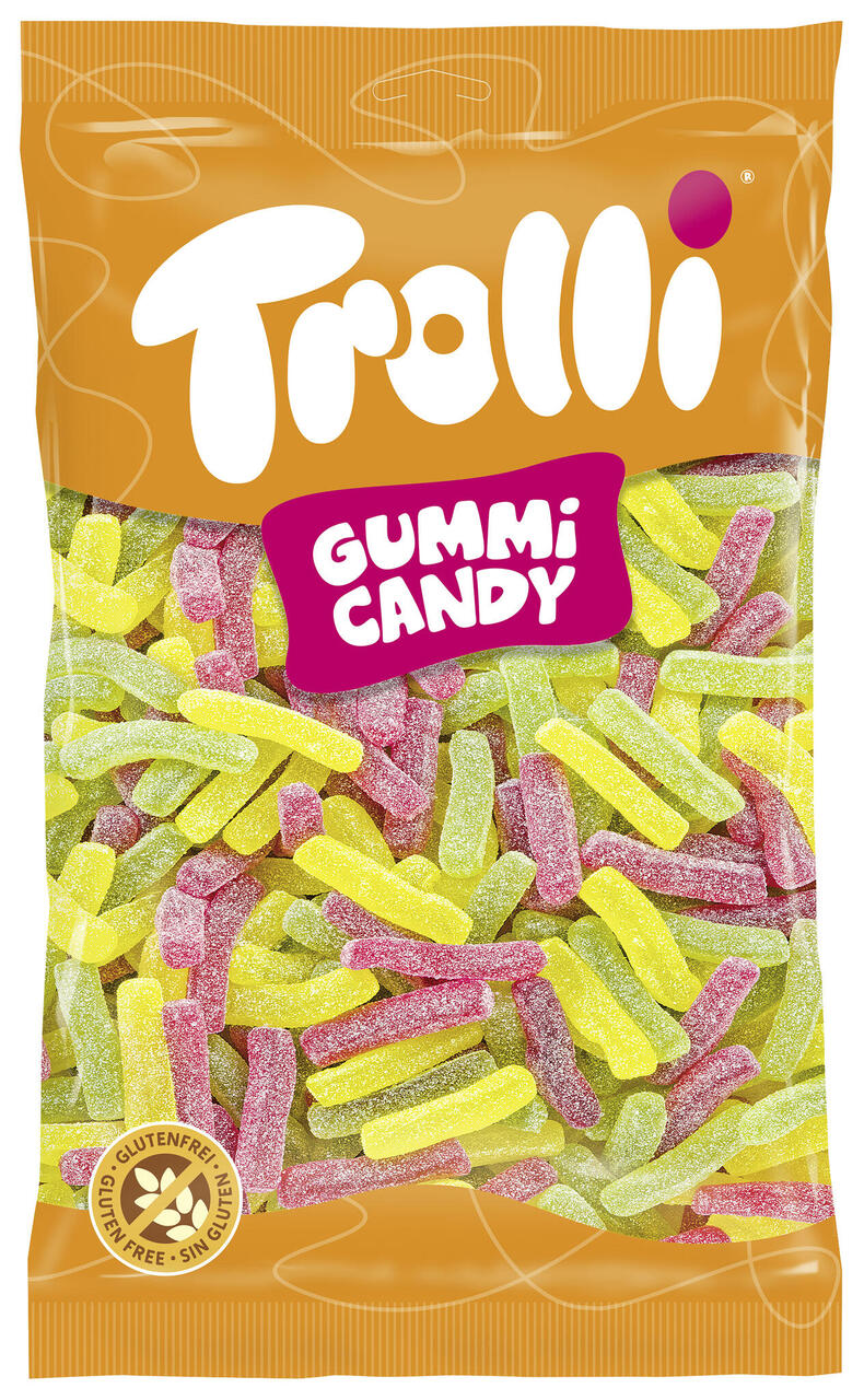 Puuviljamaitselised suhkruga kaetud kummikommid.