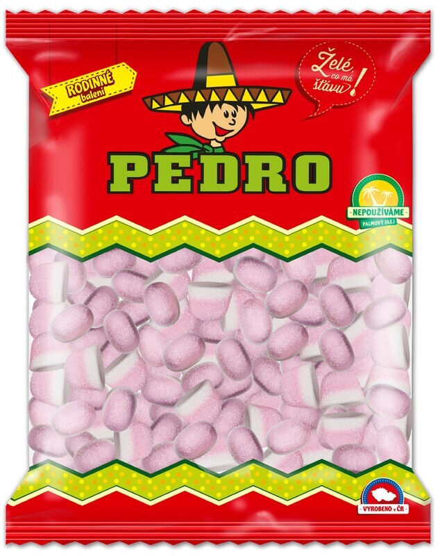 Pehme suhkruga kaetud maasikamaitseline kummikomm.
