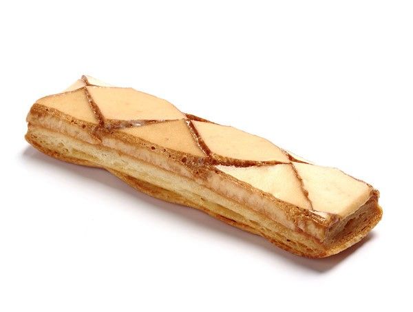 Aprikoosiglasuuriga üle võõbatud krõbe lehttaignaküpsis.