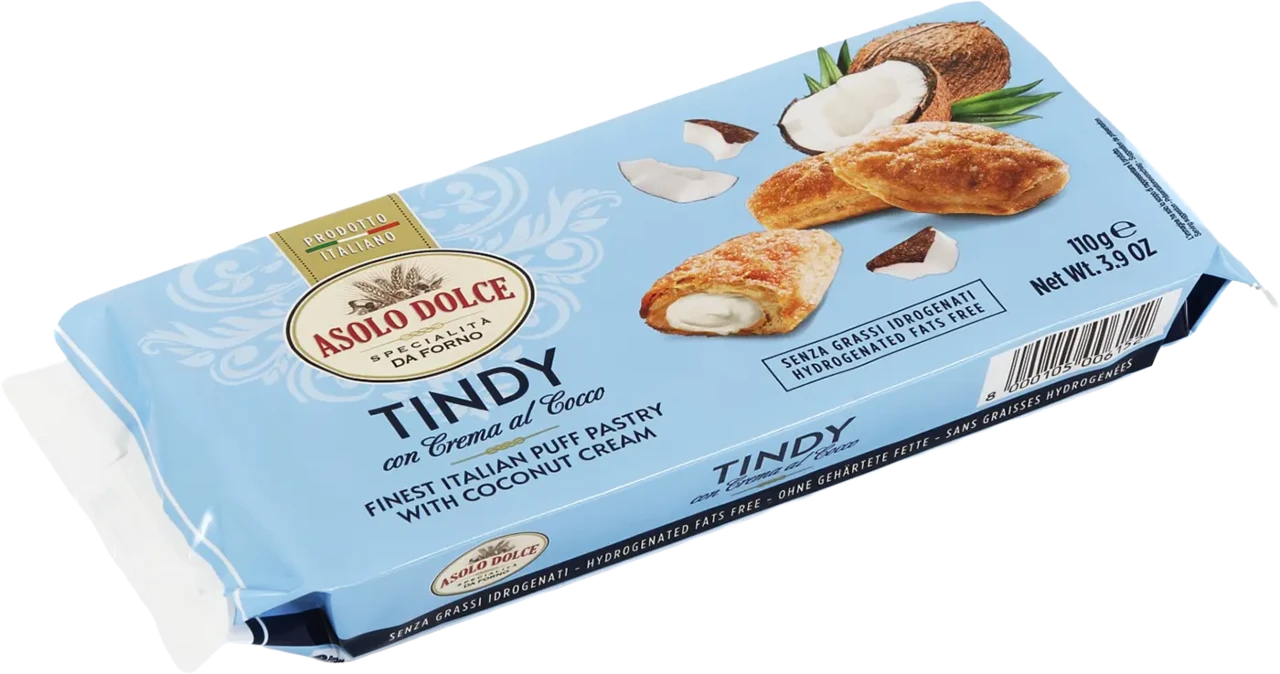 Koostisosad: kookosemaitseline kreem 41% [päevalilleõli, kookospiim, vadakupulber, emulgaator: rasvhapete mono- ja diglütseriidid; päevalille letsitiin, paksendaja: riisitärklis; vanilliin], nisujahu, taimne margariin[taimsed õlid ja rasvad (palm, päevalill), vesi, emulgaator: rasvhapete mono- ja diglütseriidid; sool, happesuse regulaator: sidrunhape; lõhna ja maitseained], suhkur, lõssipulber, sool, stabilisaator: maltitool; linnaste nisujahu, dekstroos, fruktoos, lõhna- ja maitseained.