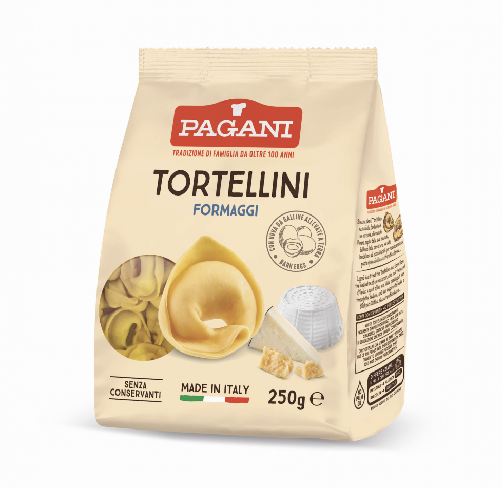 Koostisosad: Pasta 72%: durum nisujahu, 19,4% kanamuna. Täidis 28%: riivsai (pehme nisujahu, sool), 33% juust [sulatatud juustu pulber (piim, vadakupiim, sool, ensüümid), 8,2% ricotta juust (vadak, sool), 2% Pecorino Romano DOP juust (lambapiim, sool, laap), 2% Grana Padano DOP juust (piim, sool, laap, muna lüsotsüüm], taimne margariin (kookosrasv, päevalilleseemneõli, vesi), sool,lõhna- ja maitseained, ürdid ja vürtsid.