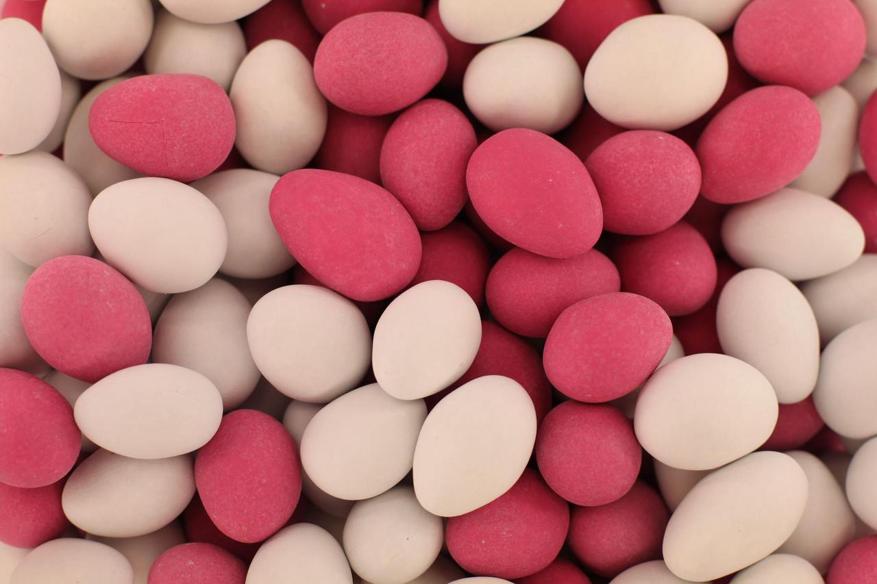 Koostisosad: 50% piimašokolaad (suhkur, kakaomass, täispiimapulber, kakaovõi, vadakupulber, emulgaator: sojaletsitiin; vanilje lõhna- ja maitseaine), suhkur, 20% mandel, toiduvärv: karmiin; tapioki dekstriin, paksendaja: kummiaraabik.