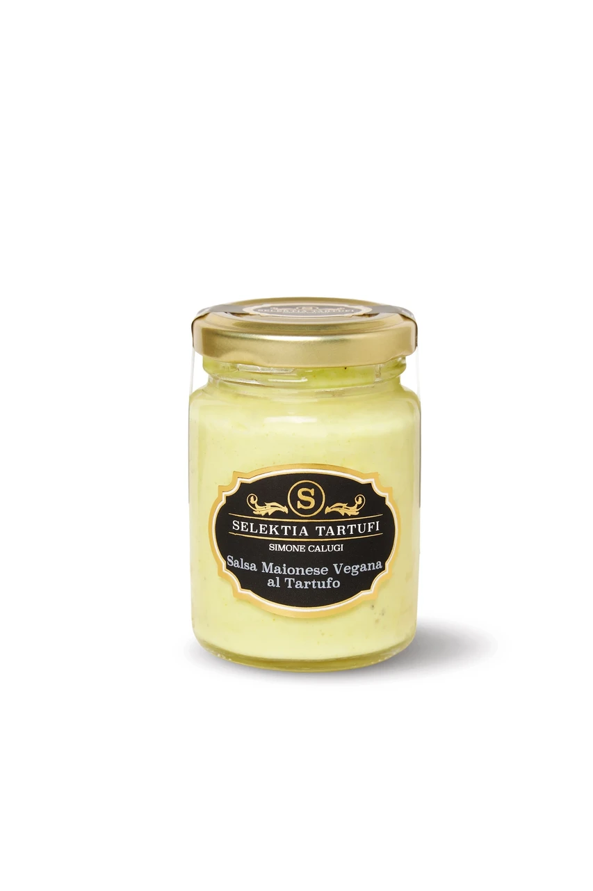 Trühvlimaitseline vegan majonees klaaspurgis.