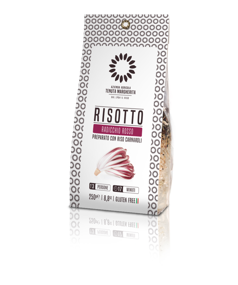Koostisosad: carnaroli riis 94%, glutamaadivaba köögivilja maitseaine (sool, kartulijahu, pärmiekstrakt, kartuli maltodekstriin, dehüdreeritud köögiviljad (sibul, porgand, seller ja petersell), päevalilleõli, vürtsid ja looduslikud maitseained), punane sigur 1,6%, sibul, must pipar.