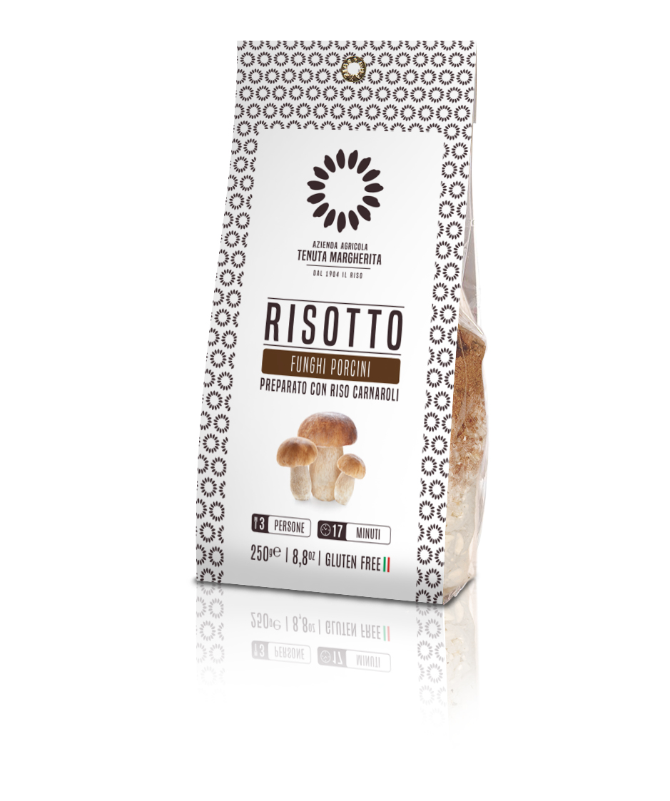 Koostisosad: carnaroli riis 91%, glutamaadivaba puravikupuljong (sool, kartulijahu, pärmiekstrakt, kartuli maltodekstriin, kuivatatud puravik 7%, dehüdreeritud köögiviljad (sibul, porgand ja küüslauk), päevalilleõli, maitseained, pipar), kuivatatud puravik 2% (Boletus Edulis ja teised sama liigi seened), sibul, küüslauk, petersell.